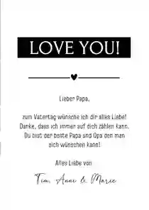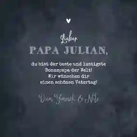 Natürlich ist es auch möglich, ein bekanntes Zitat, einen Spruch oder ein passendes Gedicht hinzuzufügen. Lies dazu unseren Artikel „Die schönsten Gedichte zum Vatertag“.