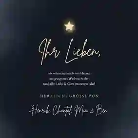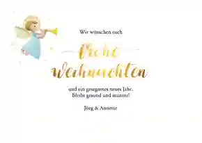 Schon damals überbrachte der Erzengel Gabriel Maria die frohe Botschaft. Und auch heute sind Engel-Motive auf Weihnachtskarten beliebte Symbole für deine Weihnachtswünsche. Schick doch deine Weihnachtskarten mit Engel an deine Liebsten und überbringe ihnen die frohe Botschaft von Weihnachten – in deinen Worten. 🎄