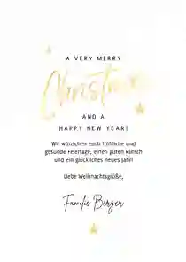 Du wünschst dieses Jahr Merry Christmas statt Frohe Weihnachten? Mit unseren englischen Weihnachtskarten verschickst du deinen Weihnachtsgruß einfach und schnell an internationale Freunde, Kollegen oder Geschäftspartner. Gestalte deine Weihnachtskarte auf Englisch und überrasche mit einer Postkarte der anderen Art.