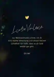 Weihnachten kommt – trotz Leid, Kummer und Krankheit. Und ja, es ist schwierig in dieser Zeit die passenden Worte zu finden. Wir helfen dir dabei, die richtigen Worte zu finden. Denn deine Botschaft kommt auch in herausfordernden Zeiten an. Wichtig für deinen Weihnachtsgruß bei Krankheit ist die passende Formulierung. Schreib, was dir am Herzen liegt, bleib persönlich und zaubere deinen Liebsten auch in schweren Zeiten ein Lächeln ins Herz. Die schönsten Vorlagen dazu findest du hier.