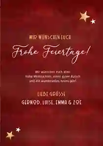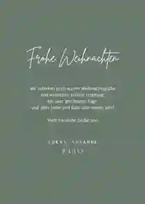 Ob als Paar, mit Kindern oder als Großfamilie: Weihnachtskarten mit Familienfoto sind eine schöne Tradition. Zeige deinen Liebsten, wie deine Familie gewachsen ist oder grüße mit einem gemeinsamen Winterfoto im Schnee, vorm Weihnachtsbaum oder vorm Kamin.