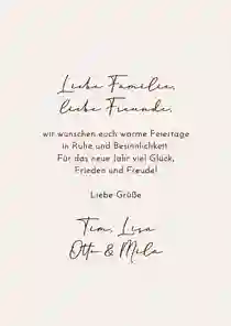 Ob als Paar, mit Kindern oder als Großfamilie: Weihnachtskarten mit Familienfoto sind eine schöne Tradition. Zeige deinen Liebsten, wie deine Familie gewachsen ist oder grüße mit einem gemeinsamen Winterfoto im Schnee, vorm Weihnachtsbaum oder vorm Kamin.