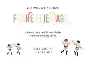 Ob als Paar, mit Kindern oder als Großfamilie: Weihnachtskarten mit Familienfoto sind eine schöne Tradition. Zeige deinen Liebsten, wie deine Familie gewachsen ist oder grüße mit einem gemeinsamen Winterfoto im Schnee, vorm Weihnachtsbaum oder vorm Kamin.