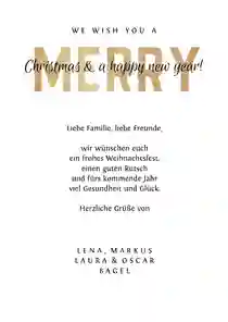✨ Tipp: Moderne Weihnachtskarten sind vor allem bei Geschäftskunden sehr beliebt. Wirf auch einen Blick auf unsere geschäftlichen Weihnachtskarten.