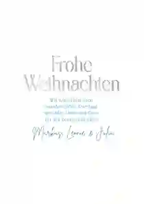 Eine Weihnachtskarte wird modern, wenn sie Stil und Eleganz ausstrahlt. Häufig sind dann auch schlichte Designs, Typografie und stilvolle Motive auf den Karten zu finden. Eine glänzende Foliendruck-Veredelung, zum Beispiel in Silber, ist nicht nur stilvoll, sondern verleiht deiner Weihnachtskarte auch einen modernen Look.