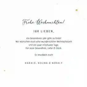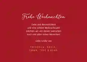 Schreibe deine Weihnachtsgrüße in Form eines altbekannten Weihnachtssongtextes auf die Karte oder lade ein Foto von früher hoch. Hast du ein traditionelles Weihnachtsplätzchen-Rezept, das bei Freunden und Familie besonders beliebt ist? Schreibe es auf die Weihnachtskarte. So wird deine Weihnachtspost wirklich nostalgisch!
