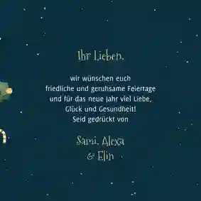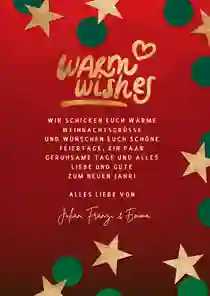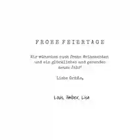 Schreibe deine Weihnachtsgrüße in Form eines altbekannten Weihnachtssongtextes auf die Karte oder lade ein Foto von früher hoch. Hast du ein traditionelles Weihnachtsplätzchen-Rezept, das bei Freunden und Familie besonders beliebt ist? Schreibe es auf die Weihnachtskarte. So wird deine Weihnachtspost wirklich nostalgisch!