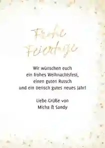 🫎 Tipp: Auch ohne eigenes Haustier kannst du tierische Weihnachtsgrüße verschicken. Weihnachtskarten mit Rentier, Füchsen oder Pferden verbreiten genauso viel Freude, wie die mit Katzen oder Hunden.