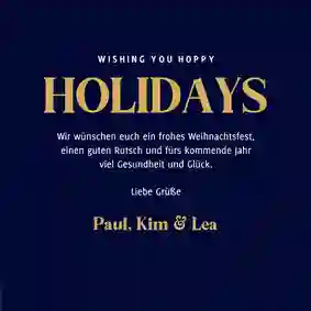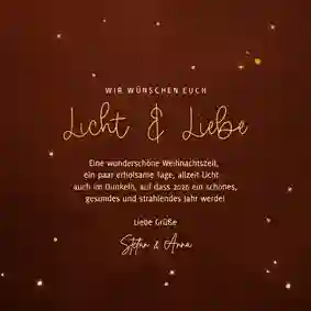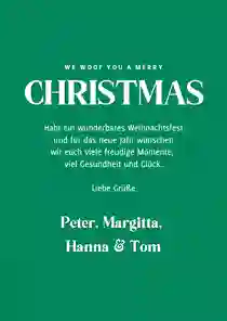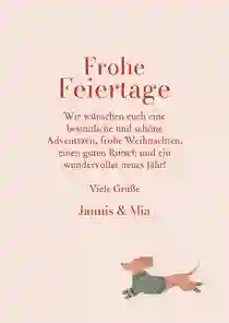 Gemeinsame Spaziergänge, neue Orte erkunden und abends auf der Couch kuscheln: dein Hund ist dein bester Freund? Dann verdient dein flauschiger Vierbeiner natürlich auch einen Platz auf deiner Weihnachtskarte. Füge ganz einfach ein eigenes Foto deiner Fellnase hinzu und lass ihn von der Karte lächeln.