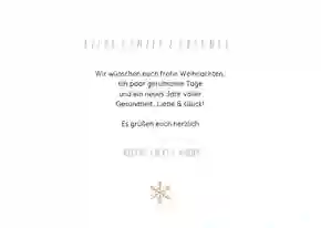 Gemeinsame Spaziergänge, neue Orte erkunden und abends auf der Couch kuscheln: dein Hund ist dein bester Freund? Dann verdient dein flauschiger Vierbeiner natürlich auch einen Platz auf deiner Weihnachtskarte. Füge ganz einfach ein eigenes Foto deiner Fellnase hinzu und lass ihn von der Karte lächeln.