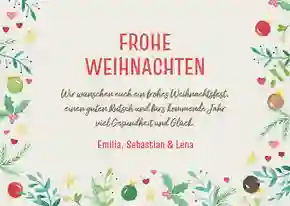 Du entwirfst deine Weihnachtskarte mit Christbaumkugel entweder selbst oder entscheidest dich für eine weihnachtliche Vorlage aus unserem Kartensortiment – das erspart dir viel Zeit in der adventlichen Hektik. Dennoch passt du deine Weihnachtskarte mit Kugel an deine Vorstellungen an.