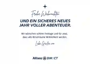Bei Allianz Direct können Sie Ihr Auto, Ihr Haus und Ihre Reise versichern lassen. Alle Versicherungen unter einem Dach. Speziell für die Feiertage wurden schöne Weihnachtskarten für Allianz Direct entwickelt.