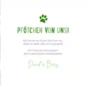 1. Karte wählen 2. Individuell gestalten 3. Empfänger wählen 4. Persönlichen Aktionscode verwenden (von zooplus erhalten) 5. Fertig! Wir kümmern uns um den Rest - völlig kostenlos.